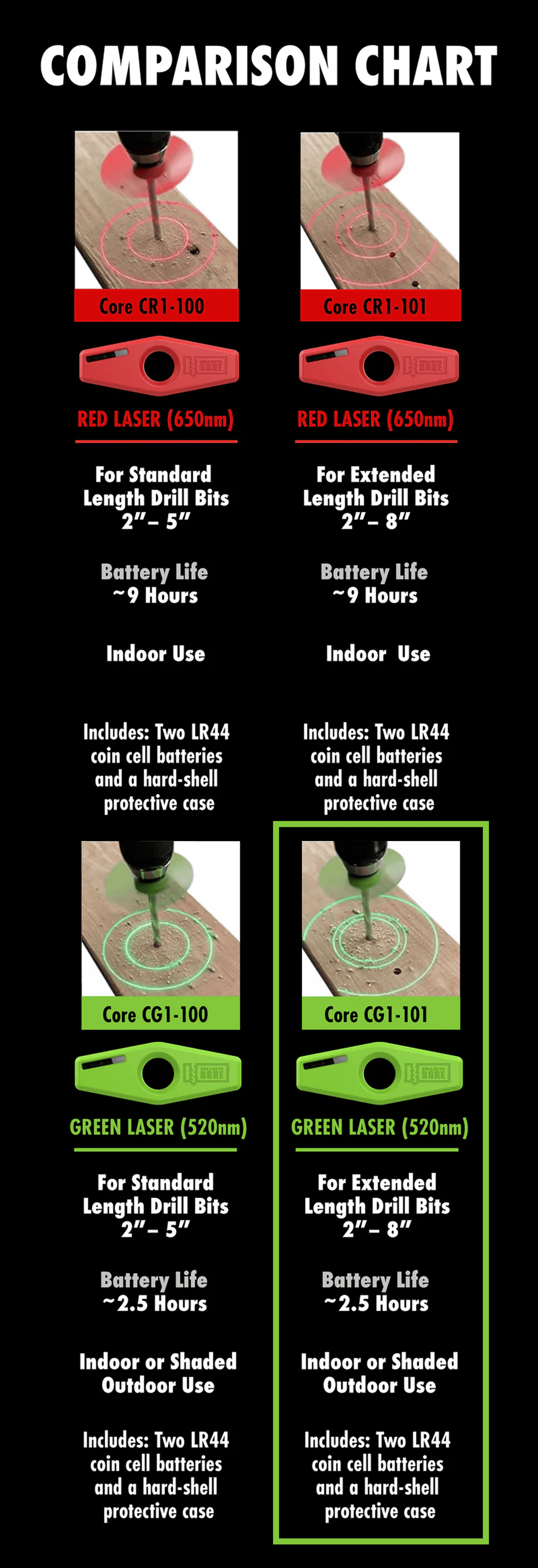 | CG1-101 MODEL DESCRIPTION | BullseyeBore Core Green Extended Distance |