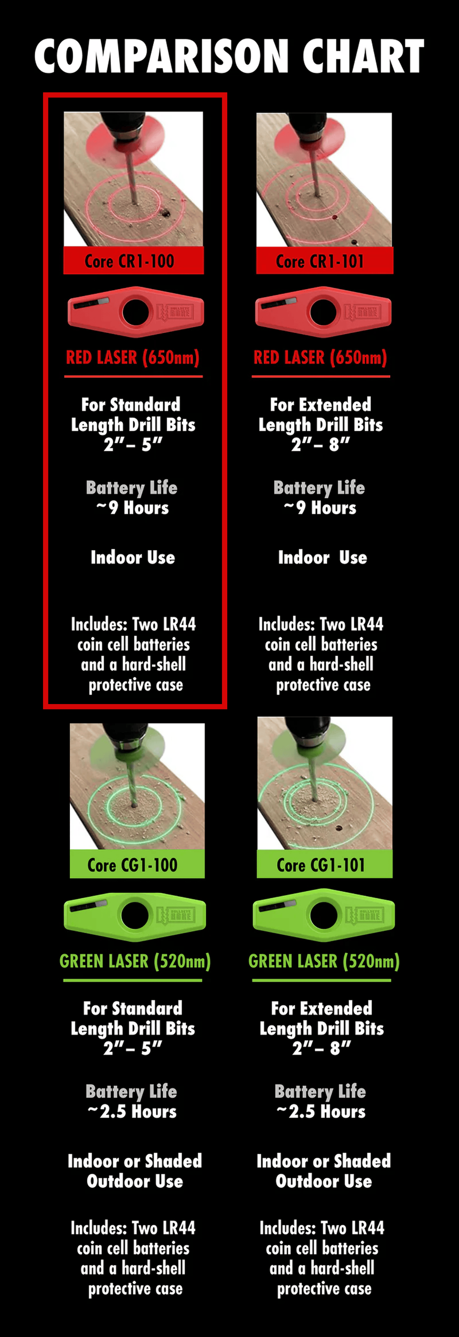 | CR1-100 MODEL DESCRIPTION | BullseyeBore Core Red Standard Distance |