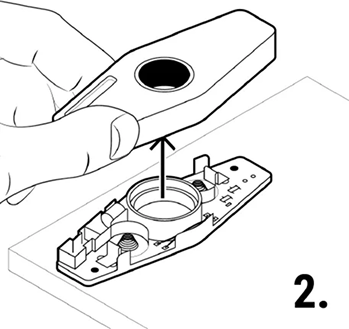 Verify that the batteries are oriented and installed correctly. Orient the housing so that the optical window in the housing is positioned over the laser and optics in the inner body. Gently slide the housing onto the inner body.