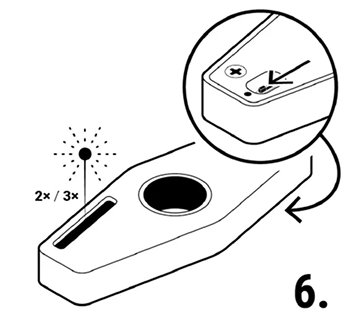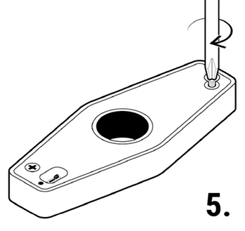 Carefully turn the entire assembled unit over so the switch side of BullseyeBore Core is visible. Use a small Phillip’s Head screwdriver to replace the two screws that secure the outer housing to the inner body. Do not overtighten the screws.