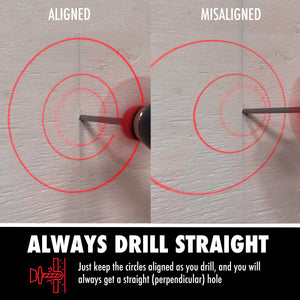 • DRILL PERFECTLY STRAIGHT EVERY TIME: Projects three bright red laser patterns that instantly show when your drill is perpendicular to any surface. When the circles align concentrically, you get a straight hole every time - no guesswork, no crooked results.