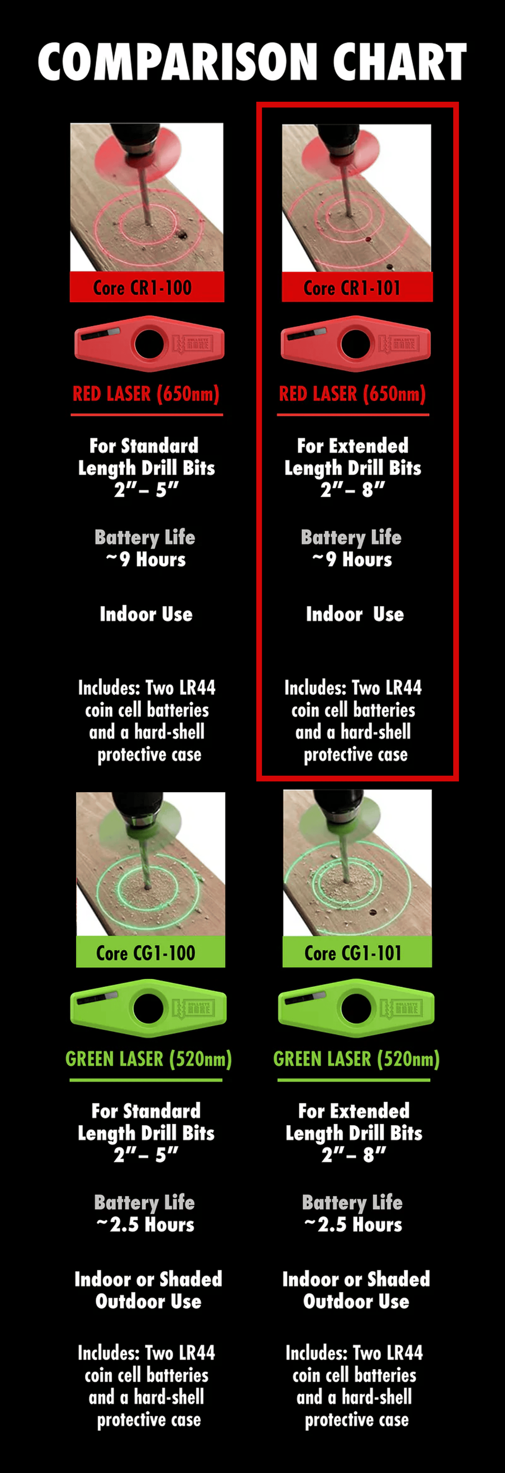 CR1-101 MODEL DESCRIPTION BullseyeBore Core Red Extended Distance